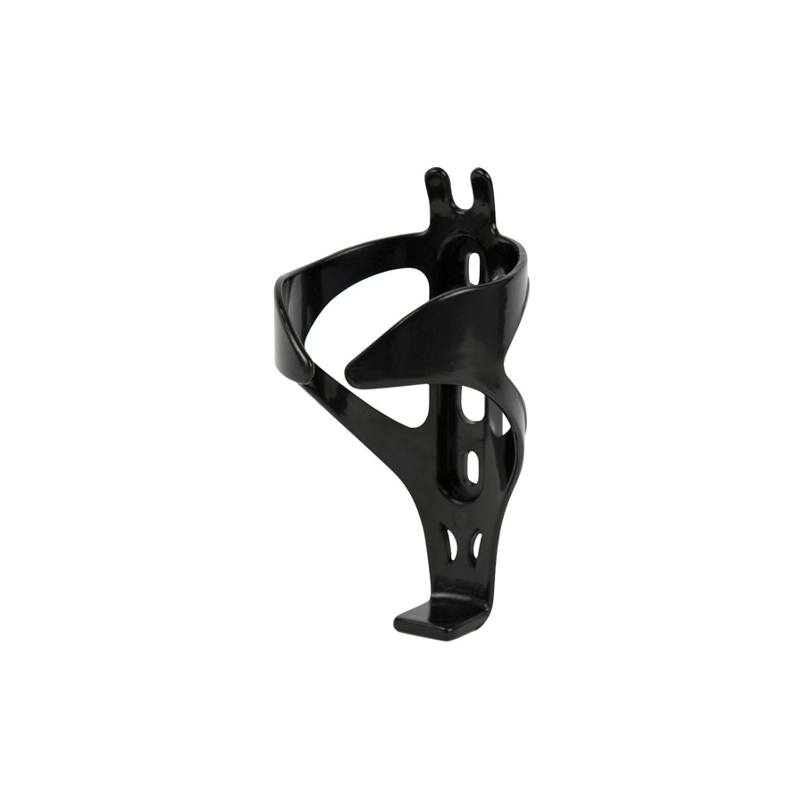 Lightweight black plastic water bottle cage suitable for all traditional water bottles. It comes with mounting bolts for mounting to the bike's frame. The bottle stays securely in the cage, both on the road and over rough terrain.