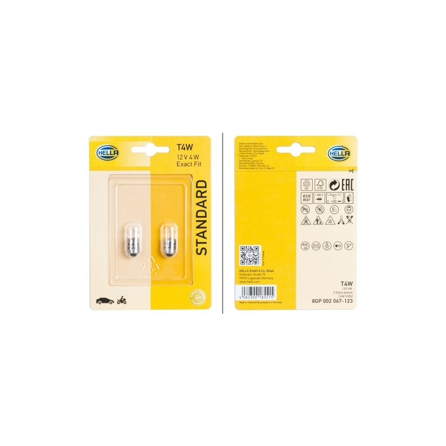 Hella Standard T4W, 12V4W (2 pieces)