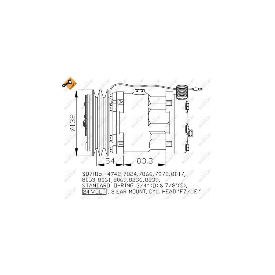 application Air conditioning pump Supplementary Article/Info 2 With PAG compressor oil With seal Voltage [V] 24 Manufacturer Restriction SANDEN EQUIVALENT Quality OE EQUIVALENT Belt Pulley Ø [mm] 132 Compressor ID SD7H15 Number of grooves 2 Oil Fill Quantity [ml] 135 Connector Shape Round Pulleys With double pulley Thread Size Exit 3/4" Thread Size Entry 7/8" Warranty 2 years Compressor oil PAG 46 Cylinder head ID (compressor) FZ / JE Similar products of other manufacturers