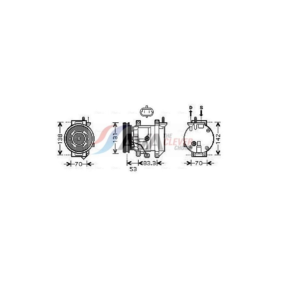 application Air conditioning pump Supplementary Article/Info 2 With PAG compressor oil With magnetic coupling Voltage [V] 12 Belt Pulley Ø [mm] 140 Refrigerant R 134a Compressor ID V5 Number of grooves 1 Capacity Compressor [cc] 160 Oil Fill Quantity [ml] 200 Connector Shape Oval Plug Type Female Warranty 2 years Number of contacts 2 Compressor oil PAG 46 Exhaust diameter [mm] 30,6 Output diameter [mm] 16,5 Similar products of other manufacturers