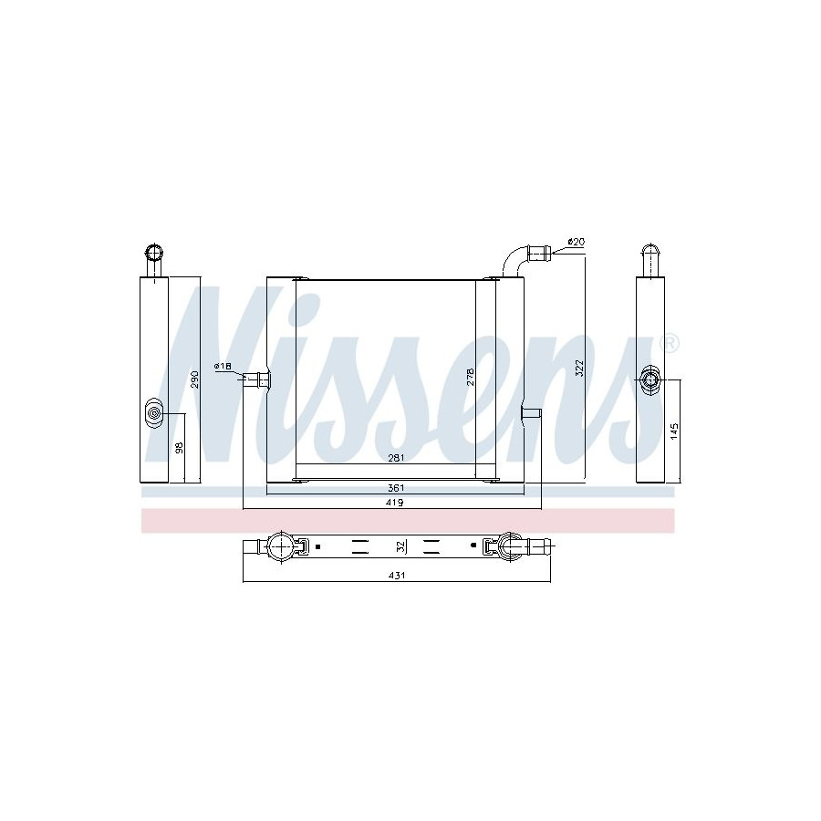 Type Radiator Core Length [mm] 321 Core Width [mm] 278 Warranty 2 years Radiator type Soldered cooling fins Cooling Fins Material Aluminium Material tank (radiator) Aluminium Core Depth [mm] 32 Exhaust diameter [mm] 20 Output diameter [mm] 18 -