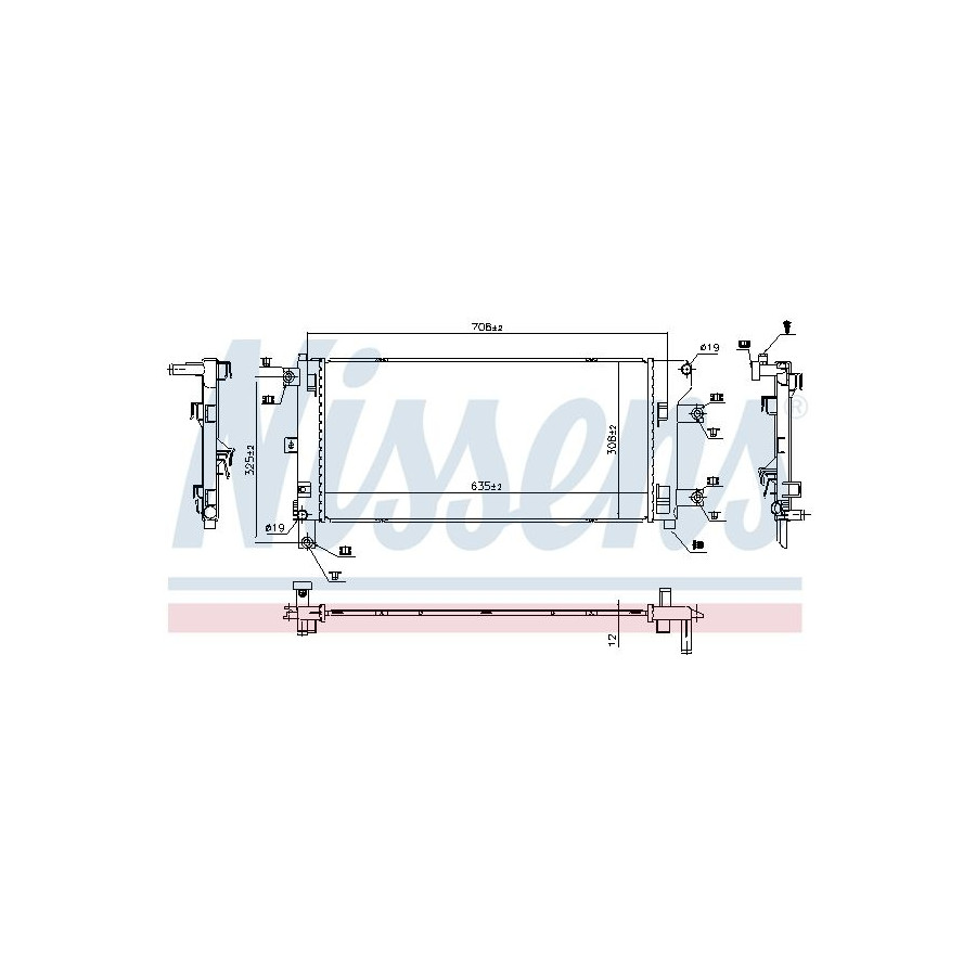 Type Radiator Core Length [mm] 635 Core Width [mm] 308 Supplementary Article/Supplementary Info With gaskets/seals Warranty 2 years Radiator type Soldered cooling fins Cooling Fins Material Aluminium Material tank (radiator) Plastic Core Depth [mm] 12 Exhaust diameter [mm] 19 Output diameter [mm] 19 Similar products of other manufacturers