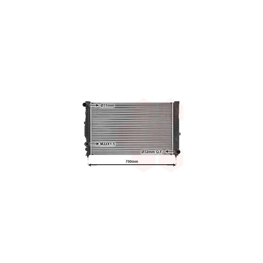 aircon +/- A / C Transmission MT Core Length [mm] 630 Core Width [mm] 400 Thread Size M22x1,5mm Warranty 2 years Radiator type Mechanically jointed cooling fins Cooling Fins Material Aluminium Material tank (radiator) Plastic Core Depth [mm] 32 Input diameter 1 [mm] 31 Output diameter 1 [mm] 32 Similar products of other manufacturers