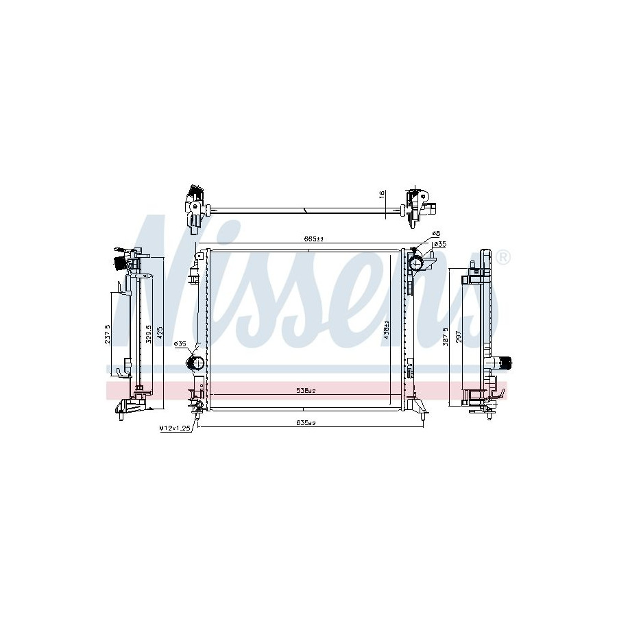 Type Radiator Core Length [mm] 538 Core Width [mm] 438 Supplementary Article/Supplementary Info Without gasket / seal Warranty 2 years Radiator type Soldered cooling fins Cooling Fins Material Aluminium Material tank (radiator) Plastic Core Depth [mm] 16 Exhaust diameter [mm] 35 Output diameter [mm] 35 Similar products of other manufacturers