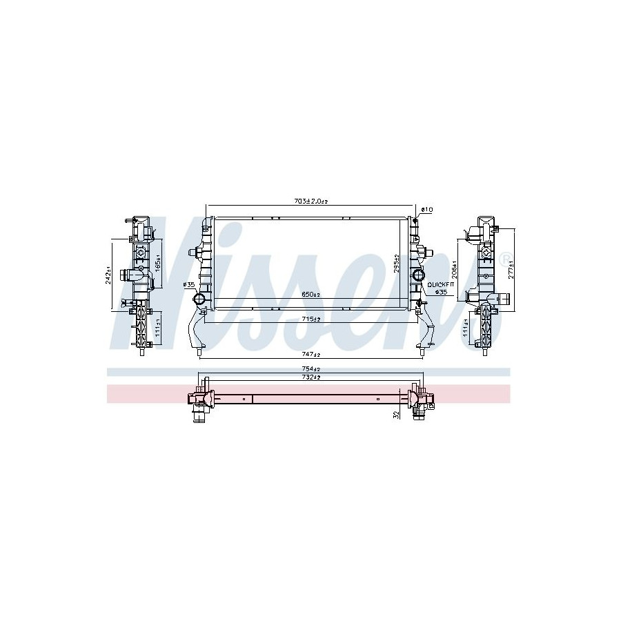 Type Radiator Core Length [mm] 650 Core Width [mm] 296 Supplementary Article/Supplementary Info Without gasket / seal Warranty 2 years Radiator type Soldered cooling fins Cooling Fins Material Aluminium Material tank (radiator) Plastic Core Depth [mm] 32 Exhaust diameter [mm] 35 Output diameter [mm] 35 Similar products of other manufacturers
