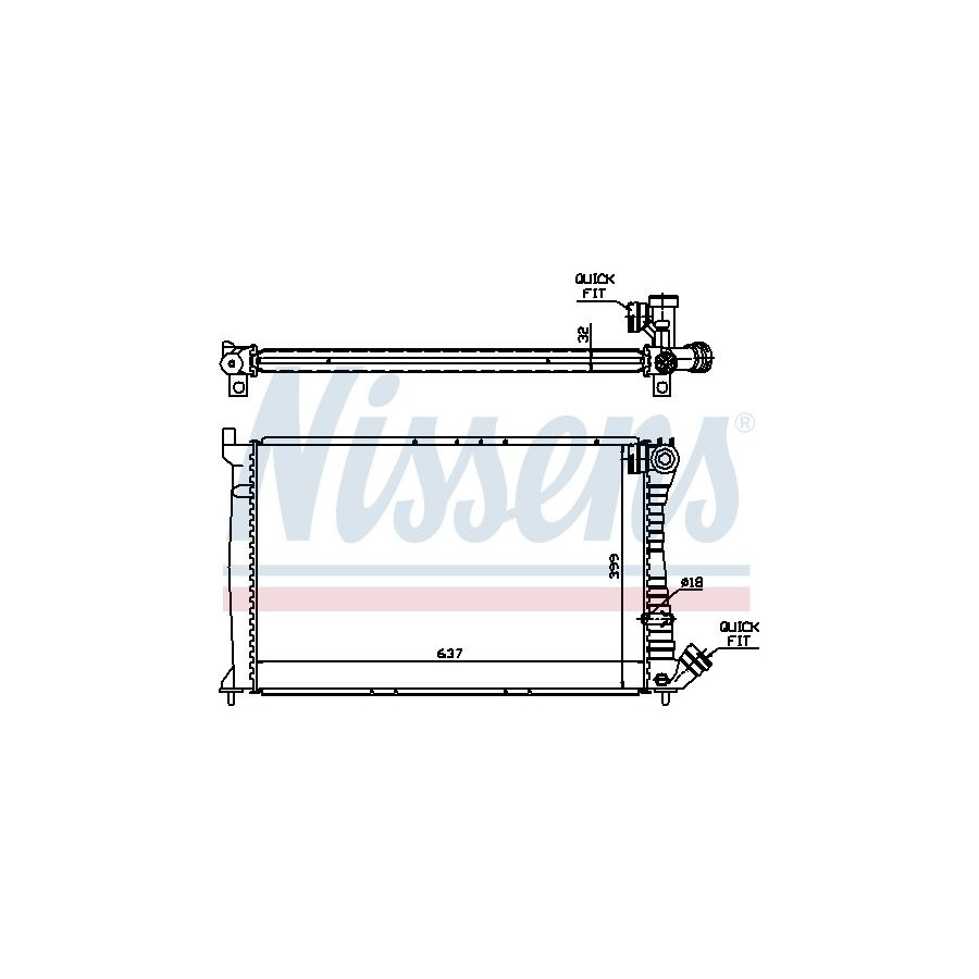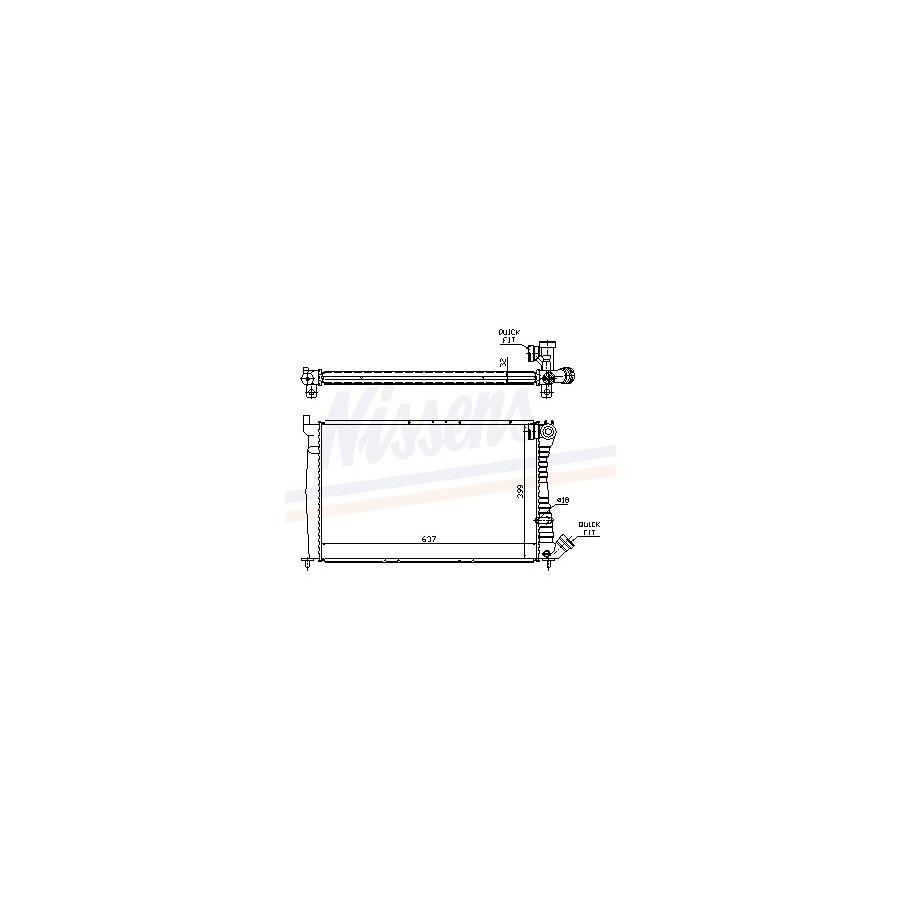 Performance For vehicles without air conditioning Type Radiator Core Length [mm] 637 Core Width [mm] 399 Supplementary Article/Info 2 With thermostat Supplementary Article/Supplementary Info With gaskets/seals Warranty 2 years Radiator type Soldered cooling fins Cooling Fins Material Aluminium Material tank (radiator) Plastic Core Depth [mm] 32 Exhaust diameter [mm] 48 Output diameter [mm] 43,5 Similar products of other manufacturers