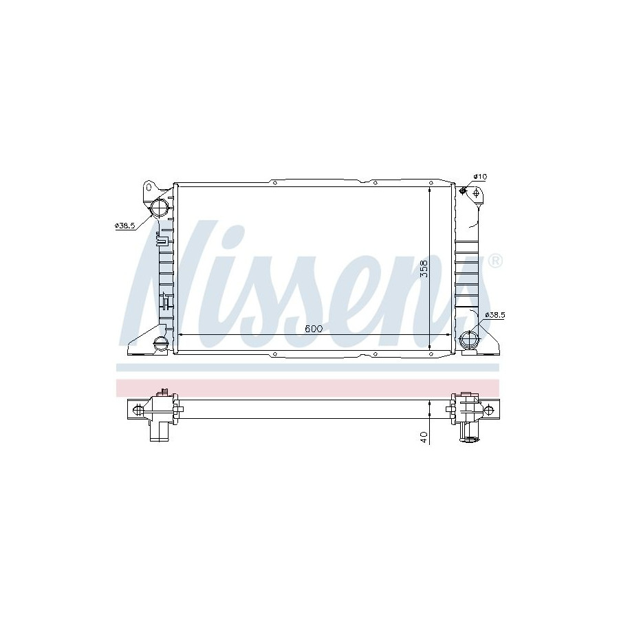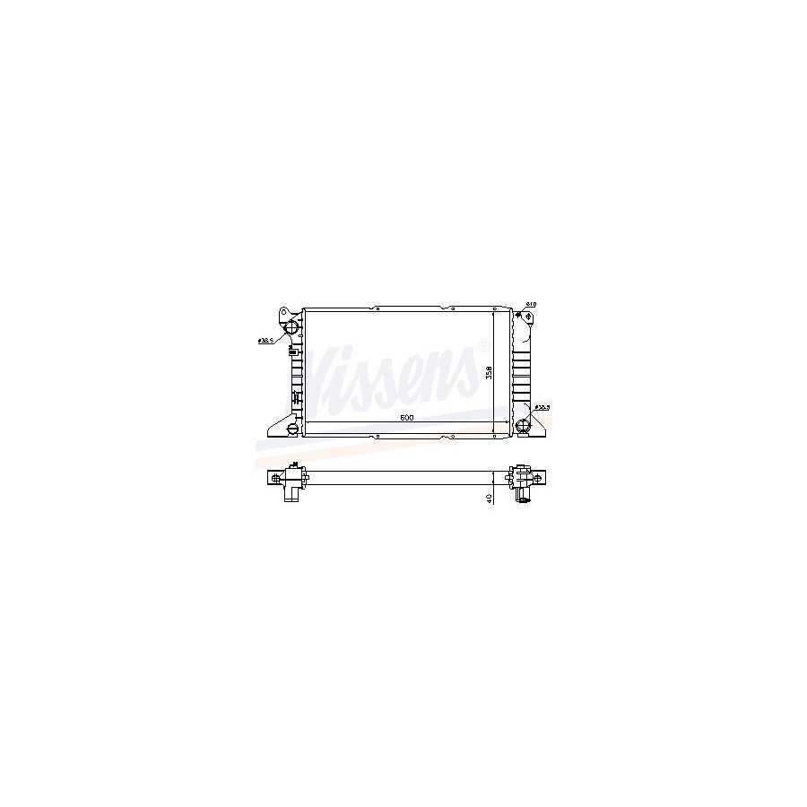 Type Radiator Core Length [mm] 600 Core Width [mm] 358 Supplementary Article/Supplementary Info With gaskets/seals Warranty 2 years Radiator type Soldered cooling fins Cooling Fins Material Aluminium Material tank (radiator) Plastic Core Depth [mm] 40 Exhaust diameter [mm] 38,5 Output diameter [mm] 38,5 Similar products of other manufacturers