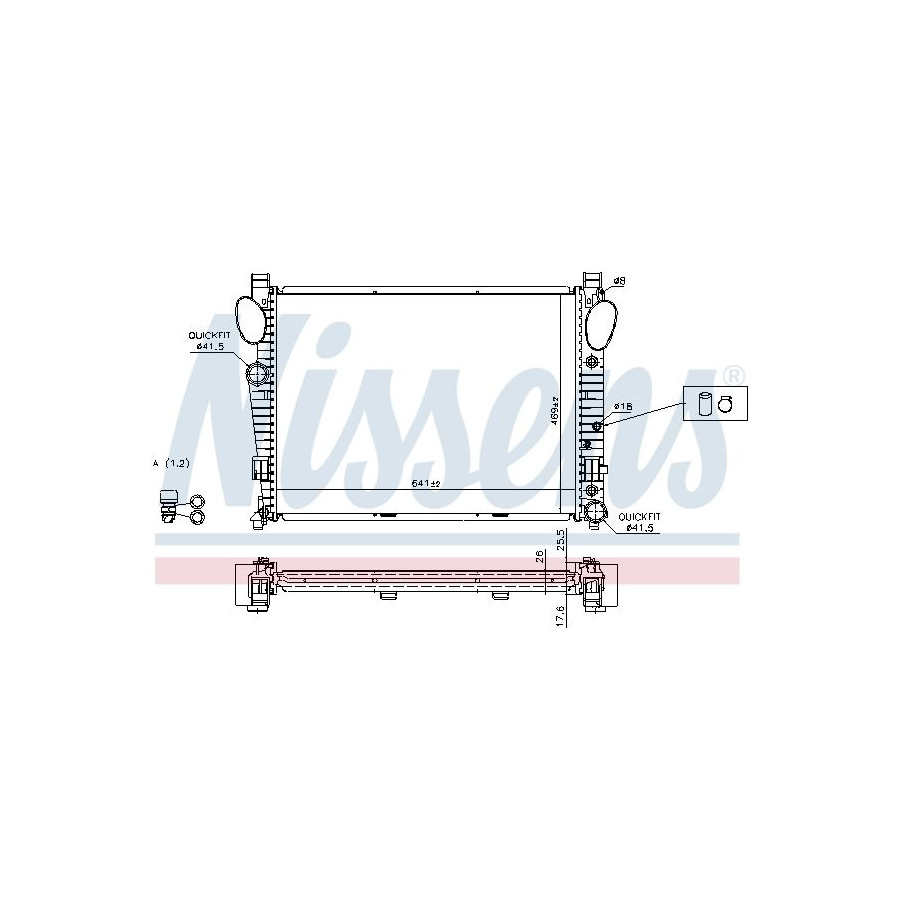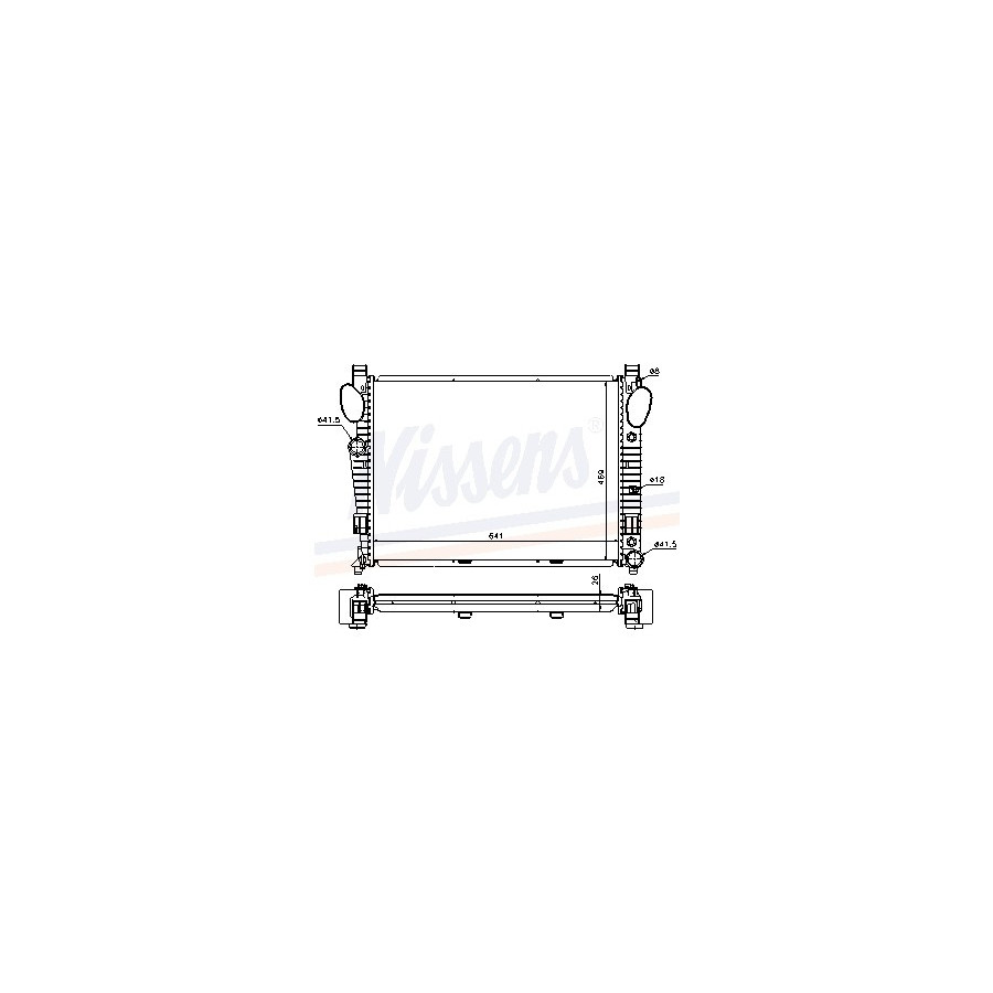 Performance For vehicles without air conditioning Type Radiator Core Length [mm] 641 Core Width [mm] 469 Supplementary Article/Supplementary Info With oil cooler With gaskets/seals Warranty 2 years Radiator type Soldered cooling fins Cooling Fins Material Aluminium Material tank (radiator) Plastic Core Depth [mm] 26 Exhaust diameter [mm] 41,5 Output diameter [mm] 41,5 Similar products of other manufacturers