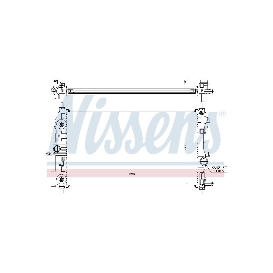 Type Radiator Core Length [mm] 680 Core Width [mm] 389 Supplementary Article/Info 2 Without expansion tank Without closing lid Supplementary Article/Supplementary Info With oil cooler With gaskets/seals Warranty 2 years Radiator type Soldered cooling fins Cooling Fins Material Aluminium Material tank (radiator) Plastic Core Depth [mm] 26 Exhaust diameter [mm] 34 Output diameter [mm] 38,5 Similar products of other manufacturers