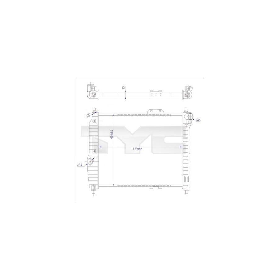 Drive Manual transmission Type Radiator Core Length [mm] 480 Core Width [mm] 416 Warranty 2 years Radiator type Mechanically jointed cooling fins Core Depth [mm] 23 Exhaust diameter [mm] 34 Output diameter [mm] 34 Similar products of other manufacturers