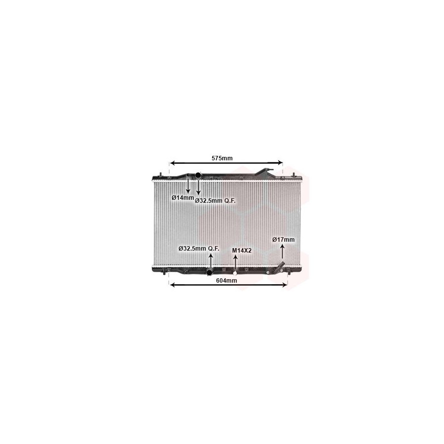 Type Radiator Core Length [mm] 425 Core Width [mm] 750 Quality IR PLUS Connector type QF Thread Size M14x2 Warranty 2 years Radiator type Soldered cooling fins Cooling Fins Material Aluminium Material tank (radiator) Plastic Core Depth [mm] 26 Pipe Diameter from [mm] 17 Pipe diameter [mm] 4 Input diameter 1 [mm] 32,5 Output diameter 1 [mm] 32,5 Similar products of other manufacturers