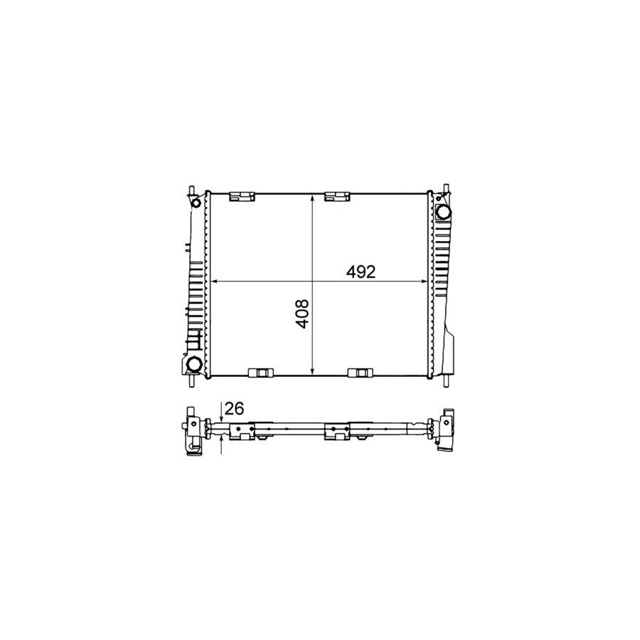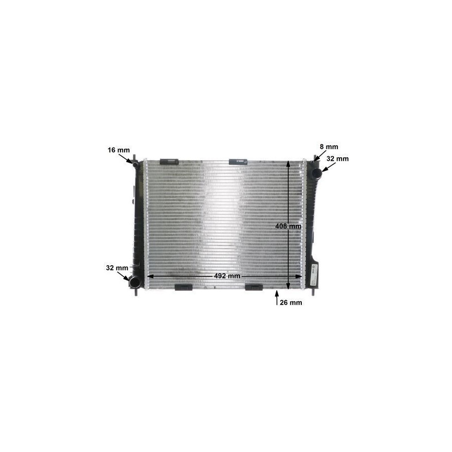 Drive Manual transmission Performance For vehicles with air conditioning Type Radiator Core Length [mm] 492 Core Width [mm] 408 Packaging length [cm] 68,1 Packaging width [cm] 49,20 Packaging height [cm] 12,40 Warranty 2 years Radiator type Soldered cooling fins Material tank (radiator) Plastic Core Depth [mm] 26 Net Weight [g] 2565 Similar products of other manufacturers