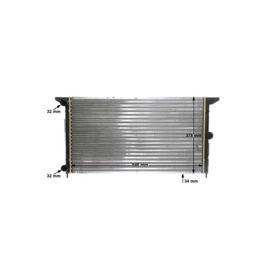 Drive Automatic Transmission Manual transmission Type Radiator Core Length [mm] 646 Core Width [mm] 377 Supplementary Article/Info 2 With screw Packaging length [cm] 48,5 Packaging width [cm] 11,50 Packaging height [cm] 61,50 Warranty 2 years Radiator type Mechanically jointed cooling fins Material tank (radiator) Plastic Core Depth [mm] 34 Net Weight [g] 2502 Similar products of other manufacturers
