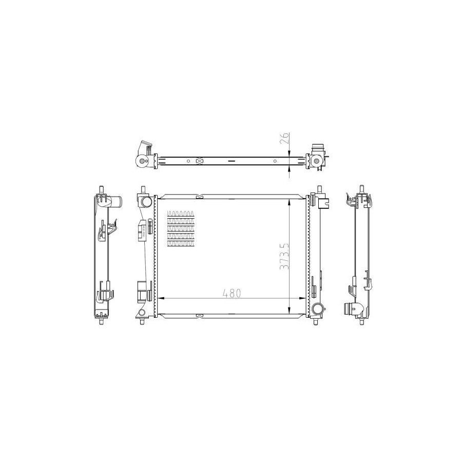 Type Radiator Core Length [mm] 480 Core Width [mm] 373 Material Aluminium Warranty 2 years Radiator type Soldered cooling fins Core Depth [mm] 26 Similar products of other manufacturers