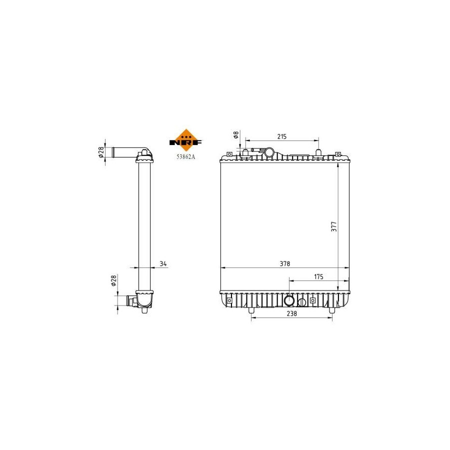 Type Radiator Core Length [mm] 375 Core Width [mm] 358 Material Aluminium Version ALTERNATIVE Warranty 2 years Radiator type Mechanically jointed cooling fins Core Depth [mm] 34 -