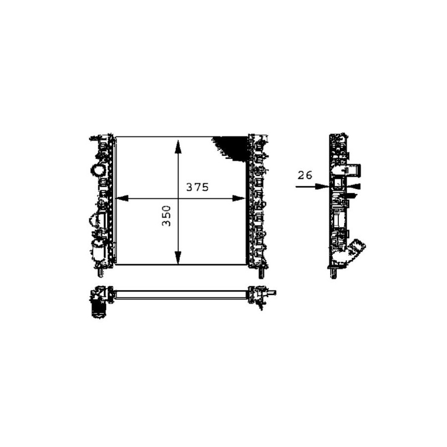 Drive Manual transmission Performance For vehicles without air conditioning Type Radiator Core Length [mm] 350 Core Width [mm] 378 Supplementary Article/Info 2 With screw Packaging length [cm] 77,5 Packaging width [cm] 14,00 Packaging height [cm] 61,00 Warranty 2 years Radiator type Mechanically jointed cooling fins Material tank (radiator) Plastic Core Depth [mm] 23 Net Weight [g] 1260 Similar products of other manufacturers