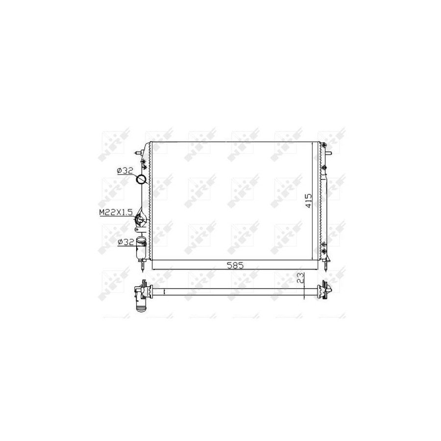 Type Radiator Core Length [mm] 585 Core Width [mm] 415 Material Aluminium Version ALTERNATIVE Warranty 2 years Radiator type Mechanically jointed cooling fins Core Depth [mm] 23 -