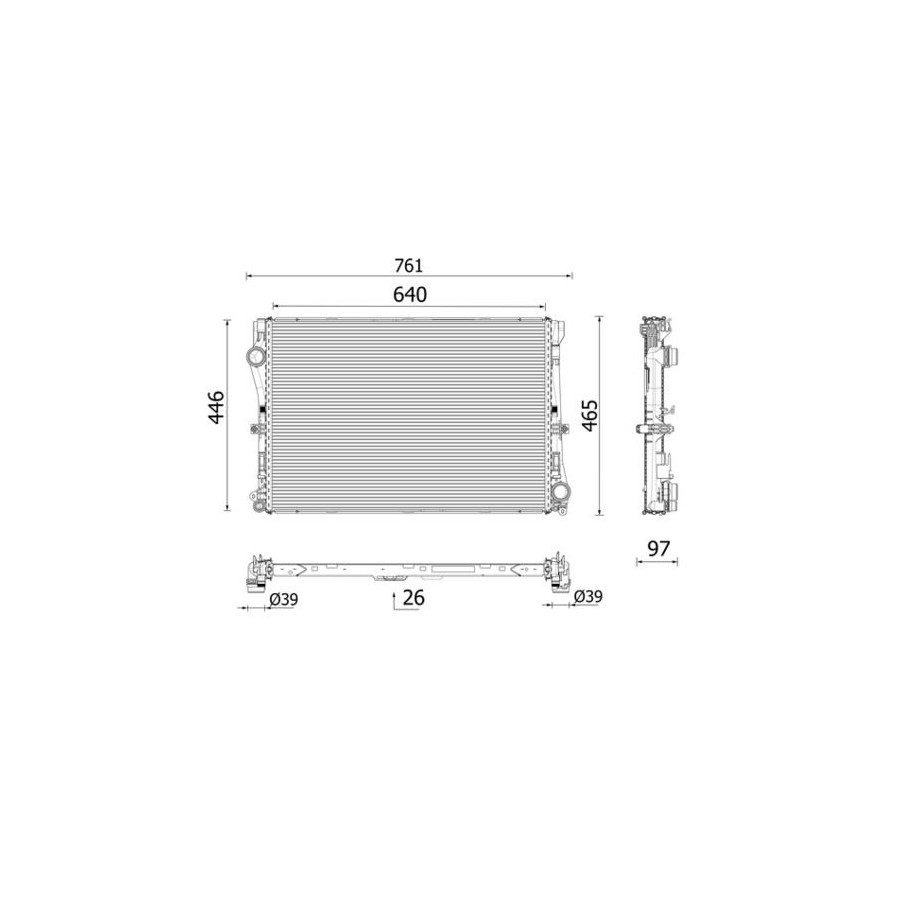 Type Radiator Core Length [mm] 640 Core Width [mm] 446 for OE number A0995001703 Packaging length [cm] 82,0 Packaging width [cm] 61,50 Packaging height [cm] 14,00 Warranty 2 years Radiator type Soldered cooling fins Cooling Fins Material Aluminium Material tank (radiator) Plastic manufacturer Mahle Core Depth [mm] 26 Net Weight [g] 3090 Exhaust diameter [mm] 38 Output diameter [mm] 38 -