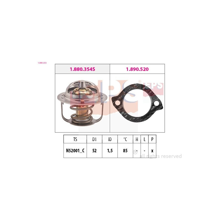 Supplementary Article/Supplementary Info With seal application Thermostat Heating / Cooling With venting hole Warranty 2 years contains article number 1,880,354S 1.890.520 Diameter 1 (mm) 52 Center distance (mm) 1,5 Opening temperature [°C] 85 Similar products of other manufacturers