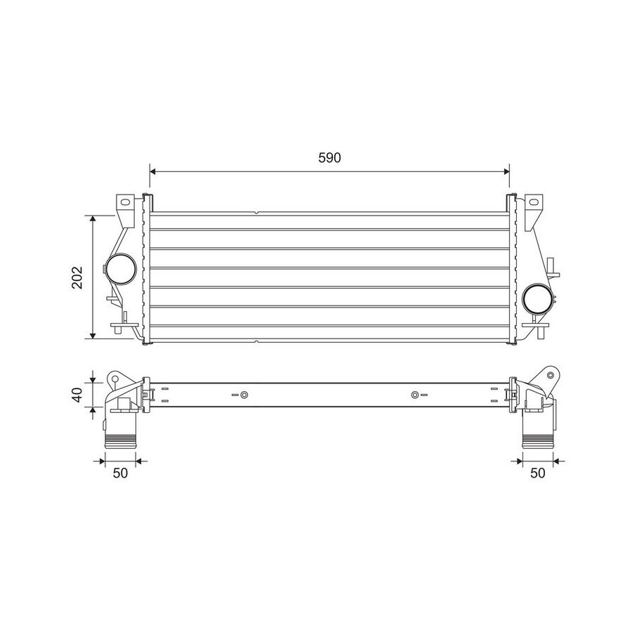 Supplementary Article/Info 2 Without EGR valve application INTERCOOLER Core Length [mm] 202 Core Width [mm] 590 Core Depth [mm] 40 Cooling Type Air cooled Warranty 2 years Weight [kg] 4,5 Exhaust diameter [mm] 50 Output diameter [mm] 50 Similar products of other manufacturers