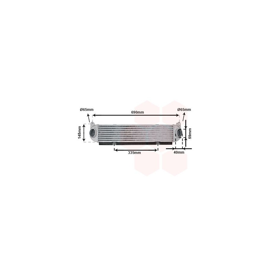 application INTERCOOLER Core Length [mm] 582 Core Width [mm] 131 Core Depth [mm] 105 Cooling Type Air cooled Warranty 2 years Cooling Fins Material Aluminium Material tank (radiator) Aluminium Input diameter 1 [mm] 65 Output diameter 1 [mm] 65 -