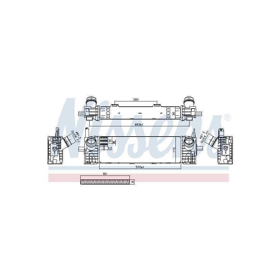 Supplementary Article/Info 2 With shortcuts application INTERCOOLER Core Length [mm] 540 Core Width [mm] 172 Core Depth [mm] 80 Supplementary Article/Supplementary Info Connection left, angled Connection right, angled Cooling Type Air cooled Warranty 2 years Radiator type Soldered cooling fins Cooling Fins Material Aluminium Material tank (radiator) Plastic Similar products of other manufacturers