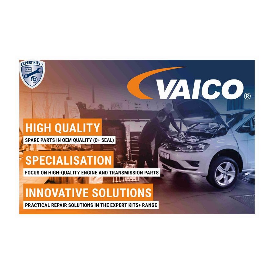 The quality brand VAICO has developed into a well-known brand name for engine and transmission parts in the worldwide aftermarket industry in various product groups.VAICO specializes in replacement kits, for example for the automatic gearbox and crankcase ventilation. Vaico products are known for their high quality, sometimes with smarter solutions than the OEM manufacturer (OEM+).Vaico offers, among other things: -