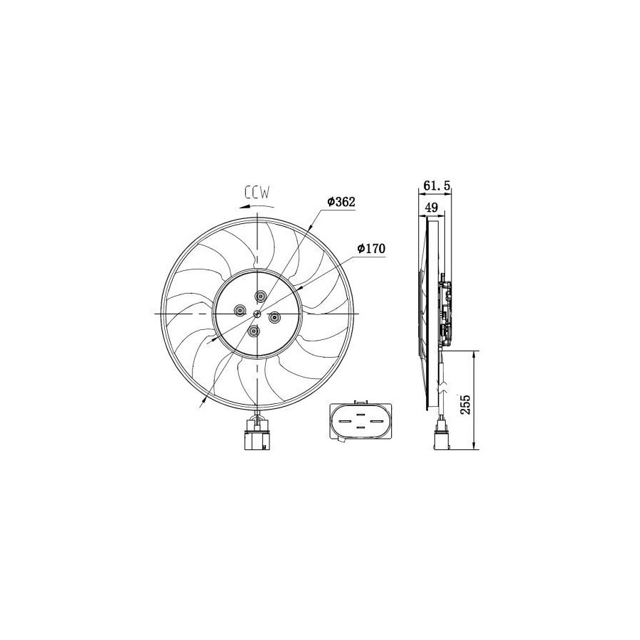 Supplementary Article/Info 2 Without radiator fan shroud Brushless motor Voltage [V] 12 Supplementary Article/Supplementary Info With control unit Manufacturer Restriction BROSE Number of Fan Blades 9 Connector Shape Oval Warranty 2 years Diameter 1 (mm) 362 Number of contacts 4 Rated power [W] 400 Similar products of other manufacturers