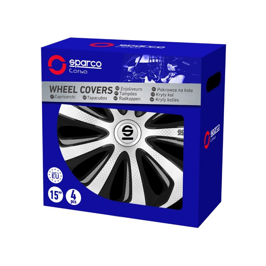 4-Piece Sparco Wheel Cover Set Sicilia 15-inch silver/black/carbon