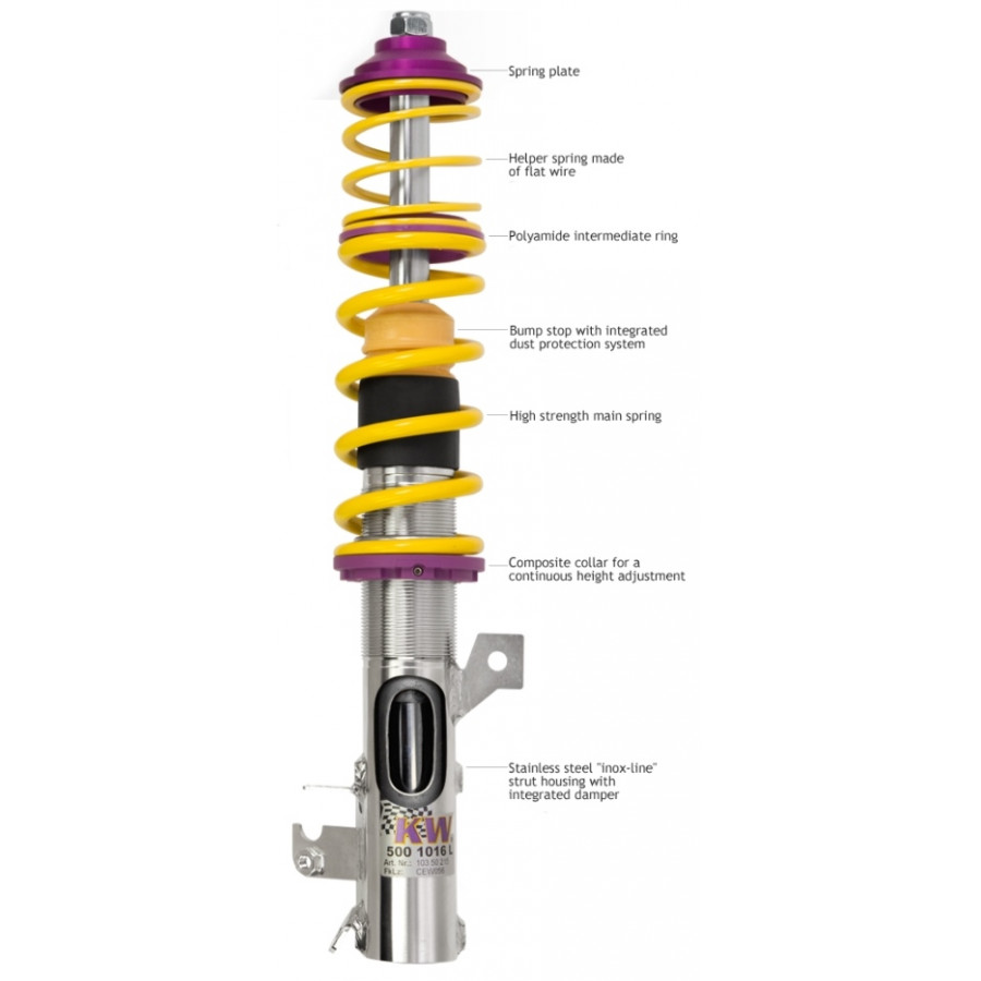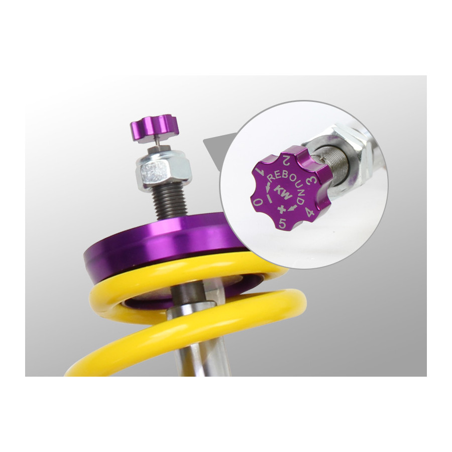 Whether it concerns long trips on the motorway or many kilometers of country roads, with KW Street Comfort coilovers you can enjoy a comfortable chassis. The shorter KW silencer housings ensure a comfortable balance despite the lowering. With this set you do not compromise on comfort, but still enjoy the advantages of a sporty screw-set.Fully adjustable