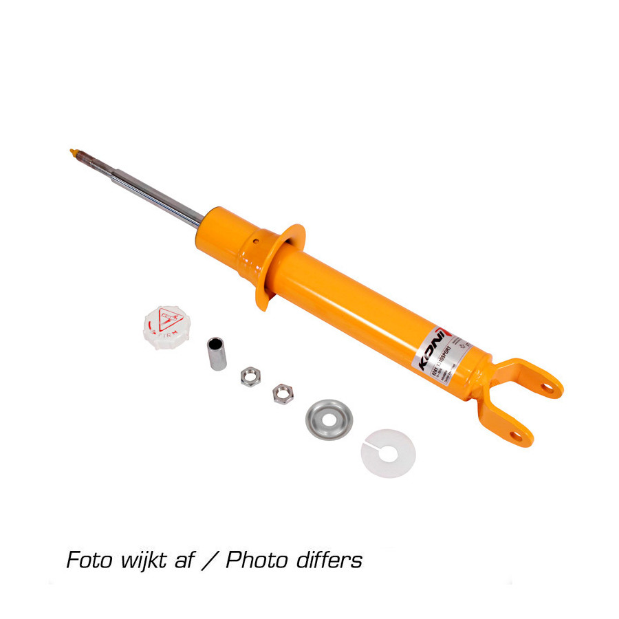 Koni Orange STR.T shock absorbers. These shock absorbers are Koni's entry-level dampers. Very attractively priced. Made for reduced feathers by using shortened piston rods. Also, the shock absorber is harder than the original, making it the ideal shock absorber to combine with a lowering springs set to improve the road position of your car. Suitable for reductions up to 40mm. Also available as kit with H & R progressive springs.