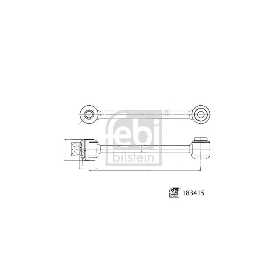 Material Steel Fitting Position Rear axle left (passenger side) Rear axle right (driver's side) Rod/Strut Coupling Rod Observe service information Warranty 2 years Diameter [mm] 1 Length [mm] 183 -