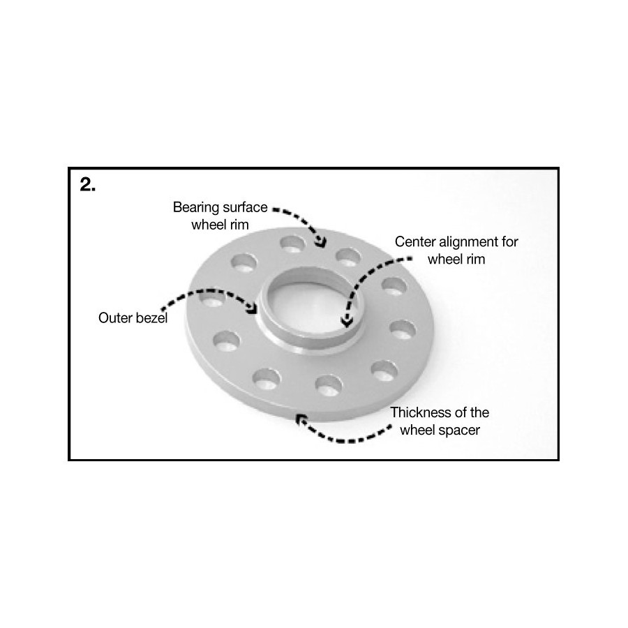 The track spacer must be mounted between the wheel and the axial hub using longer wheel bolts (order separately).
