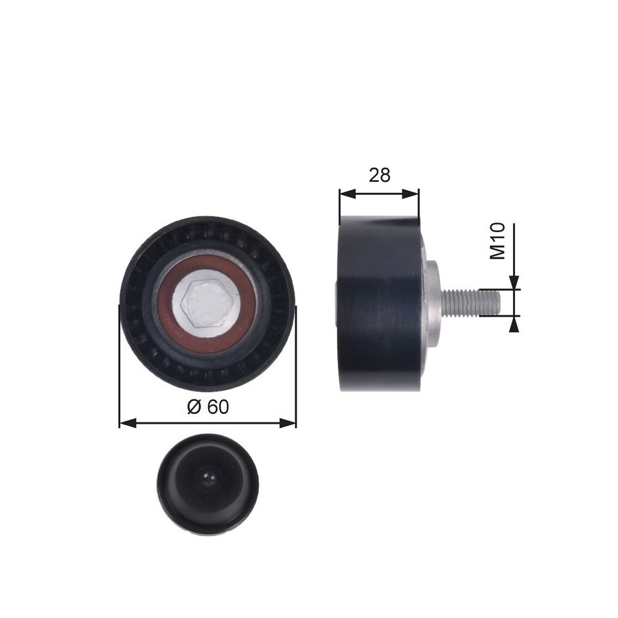 Material Plastic Outer diameter [mm] 60 Inner diameter [mm] 10 Surface Smooth Warranty 2 years Width [mm] 28 Bolt diameter [mm] 10 Similar products of other manufacturers