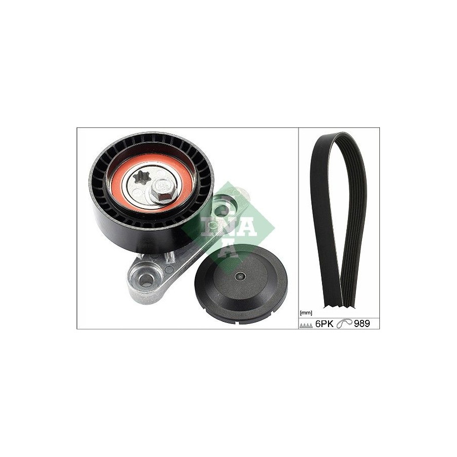 Supplementary Article/Info 2 Requires special tools for mounting Number of Ribs 6 application V-ribbed belt set Supplementary Article/Info 2 Check the alternator pulley and replace if necessary. Observe service information Length 1 [mm] 989 Warranty 2 years Observe mounting information Similar products of other manufacturers