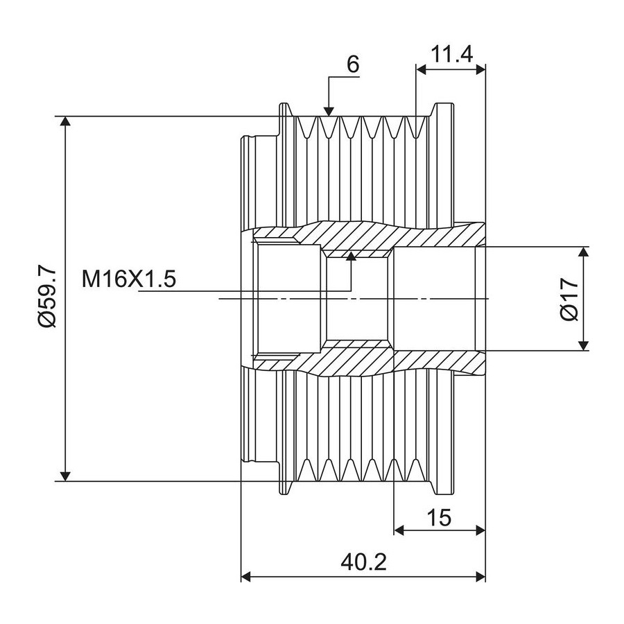 Outer diameter [mm] 64 Bolt Head-/Nut Design Torx Thread Size M16 Number of grooves 6 Rotation Direction Clockwise rotation Warranty 2 years Width [mm] 40,2 Distance to first groove [mm] 11 Weight [kg] 0,61 Hole diameter [mm] 17 Similar products of other manufacturers