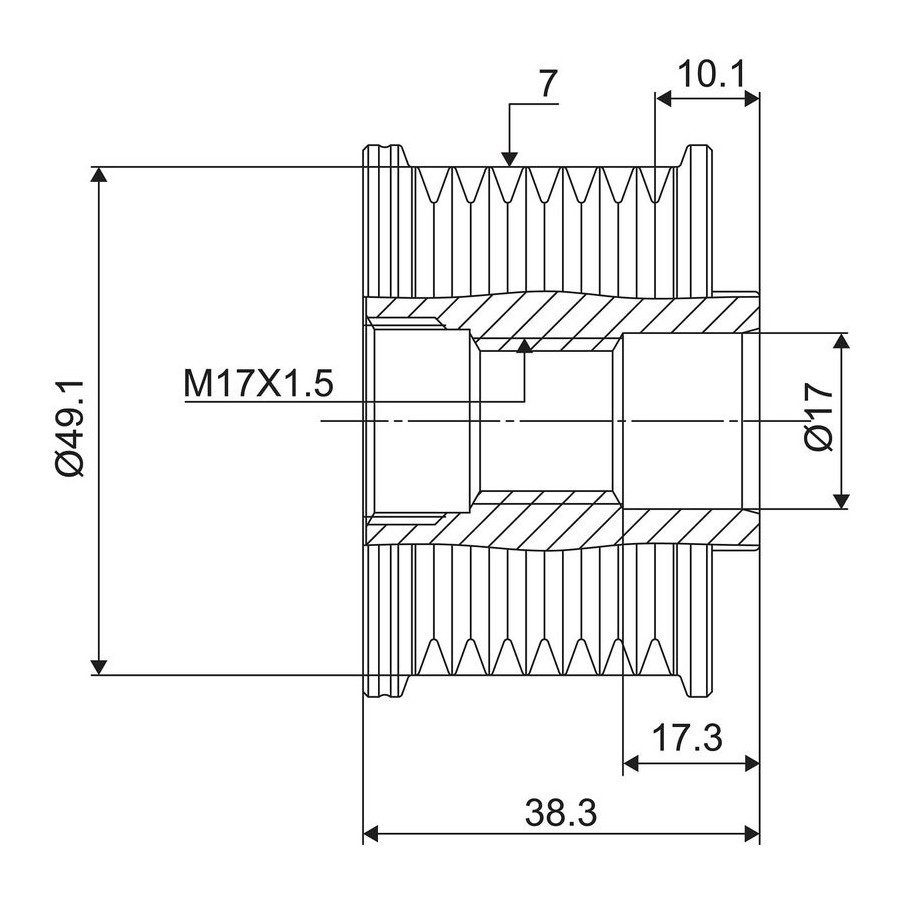 Outer diameter [mm] 53,3 Bolt Head-/Nut Design Torx Thread Size M17 Number of grooves 7 Rotation Direction Clockwise rotation Warranty 2 years Width [mm] 38,3 Distance to first groove [mm] 10,1 Depth (mm) 17,3 Weight [kg] 0,4 Hole diameter [mm] 17 Similar products of other manufacturers
