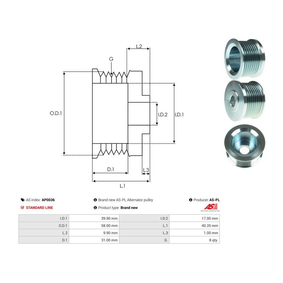 | Number of grooves | 8 |