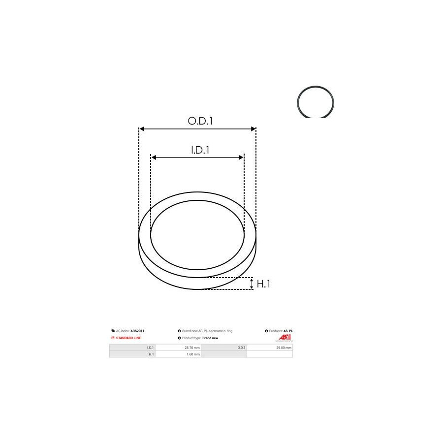 Inner diameter 1 [mm] 25,70 Outer Diameter 1 [mm] 29,00 Quality Standard line Warranty 2 years Height 1 (mm) 1,60 New part without deposit -