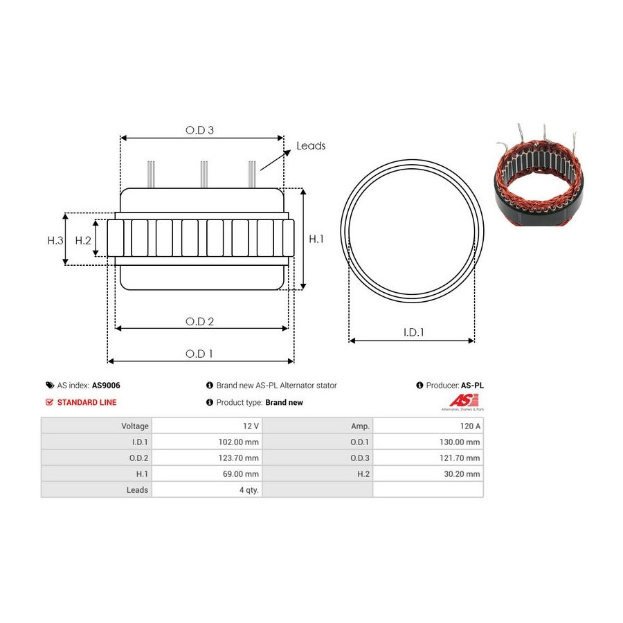 Inner diameter [mm] 102,00 Voltage [V] 12 Outer Diameter 1 [mm] 121,70 Quality Standard line Alternator Charge Current [A] 120 Warranty 2 years New part without deposit -