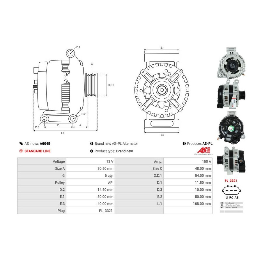 Voltage [V] 12 Alternator Charge Current [A] 150 Pulleys With belt pulley for OE number 104210-3690 Quality Standard line Warranty 2 years New part without deposit Similar products of other manufacturers