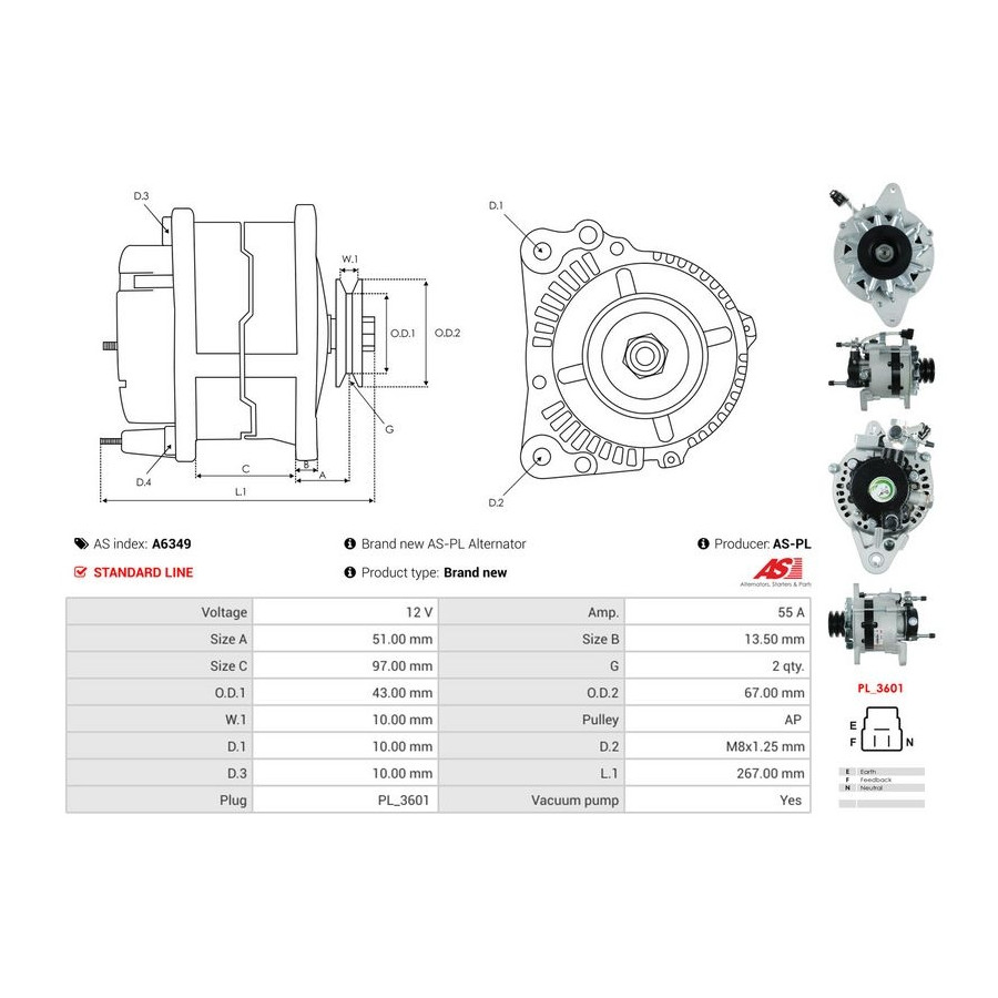 Voltage [V] 12 Alternator Charge Current [A] 55 Pulleys With belt pulley for OE number 37030-54130 Quality Standard line Warranty 2 years New part without deposit Similar products of other manufacturers