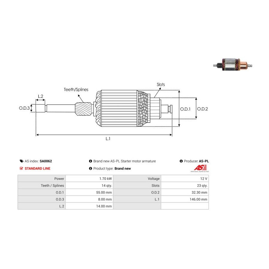 | Starter motor power [kW] | 1,7 |