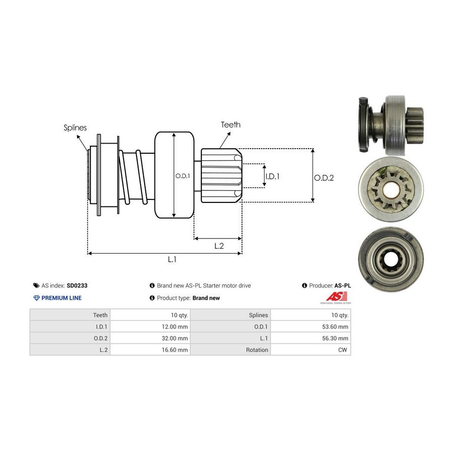 Inner diameter [mm] 12,00 Number of Teeth 10 Outer Diameter 1 [mm] 53,60 Outer diameter 2 [mm] 32,00 Quality PREMIUM LINE Length 1 [mm] 56,3 Rotation Direction Clockwise rotation Warranty 2 years New part without deposit -