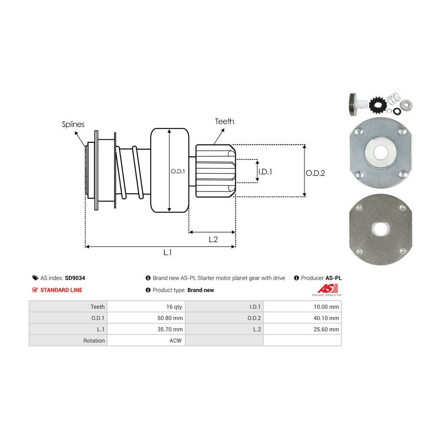 Inner diameter [mm] 10,00 Number of Teeth 16 Outer Diameter 1 [mm] 50,80 Outer diameter 2 [mm] 40,10 Quality Standard line Length 1 [mm] 35,7 Rotation Direction Anti-clockwise rotation Warranty 2 years New part without deposit -