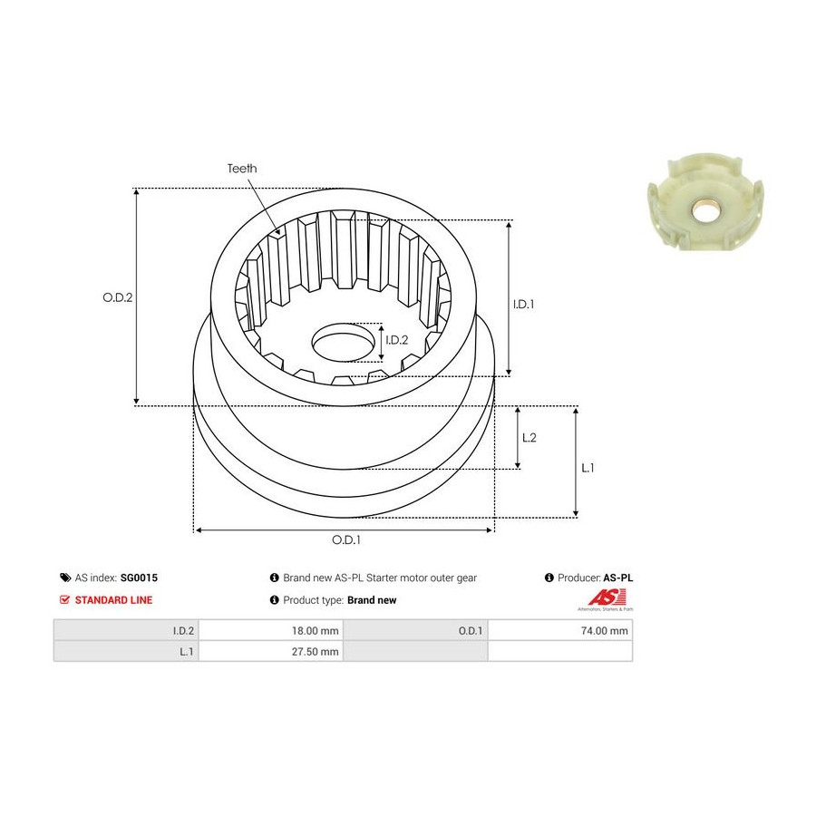 Inner diameter [mm] 18,00 Quality Standard line Length 1 [mm] 27,5 Warranty 2 years New part without deposit -