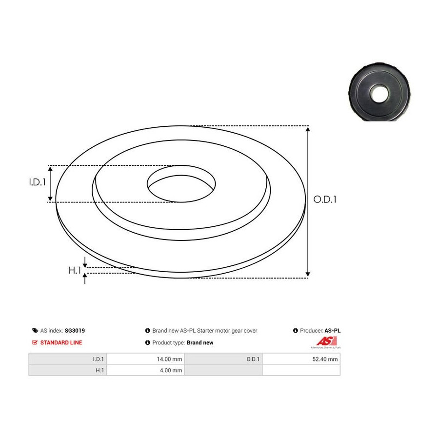 Outer diameter [mm] 52,40 Inner diameter [mm] 14,00 Quality Standard line Length 1 [mm] 4 Warranty 2 years New part without deposit -
