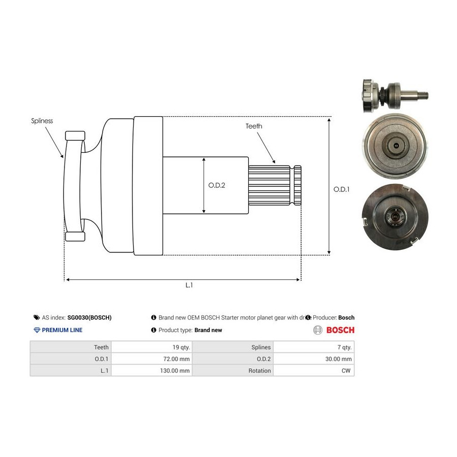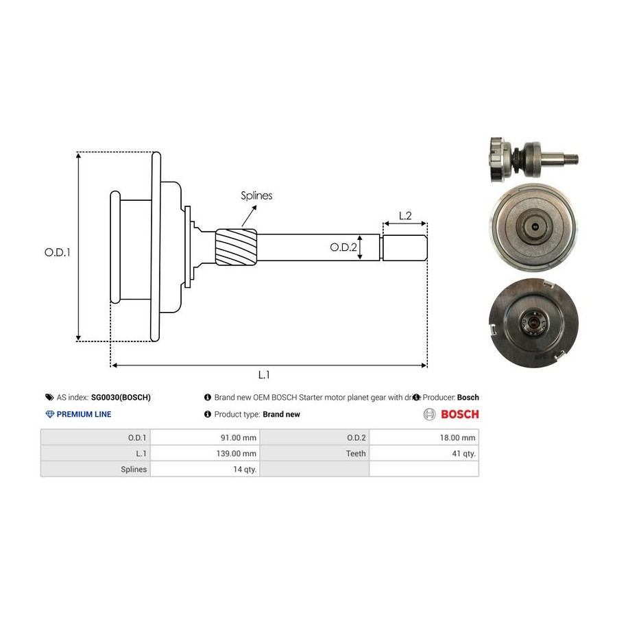 Outer diameter [mm] 91,00 Inner diameter [mm] 8,00 Number of Teeth 41 Quality PREMIUM LINE Length 1 [mm] 139 Number of grooves 14 Warranty 2 years New part without deposit -