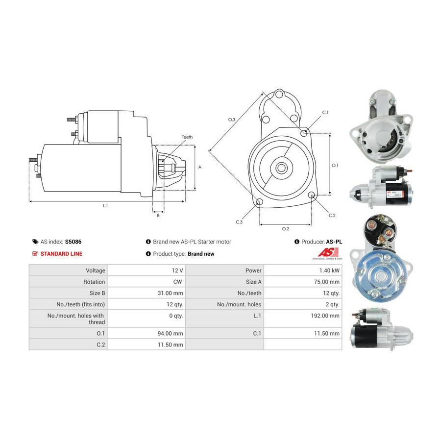 Number of Teeth 12 Number of mounting bores 2 Rotation Direction Clockwise rotation Starter motor power [kW] 1,4 Voltage [V] 12 for OE number M0T35471 Quality Standard line Warranty 2 years New part without deposit Similar products of other manufacturers