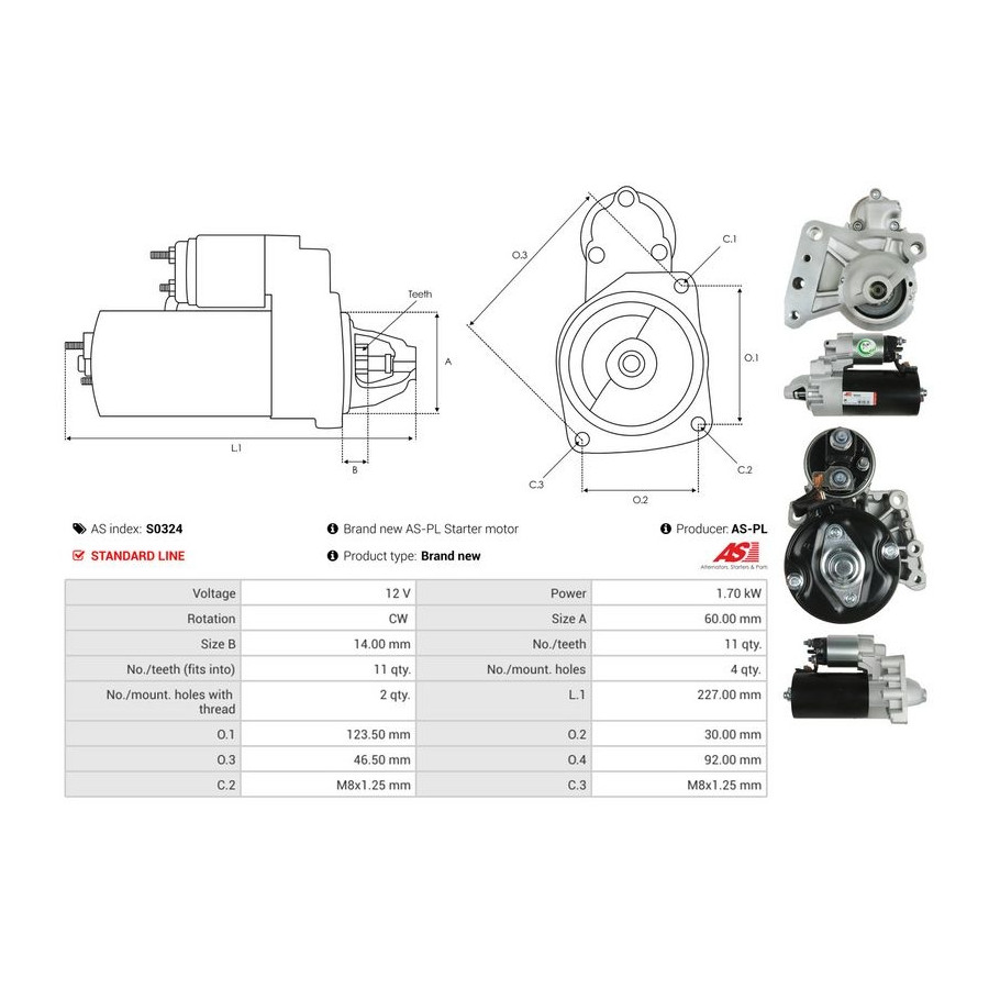 | Starter motor power [kW] | 1,7 |